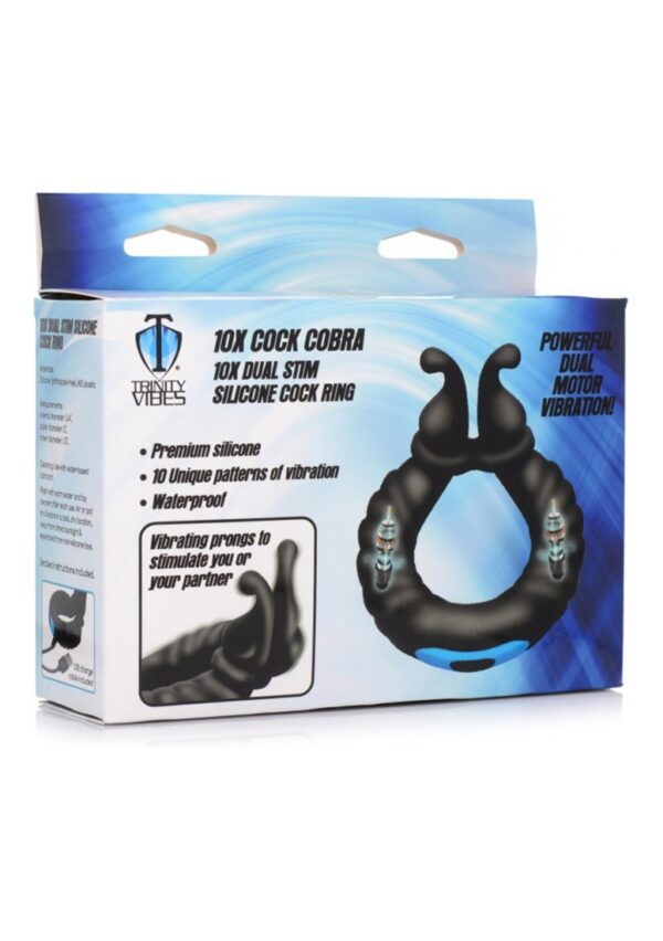 10X Cobra Dual Stimulation Silicone Cock Ring – Black