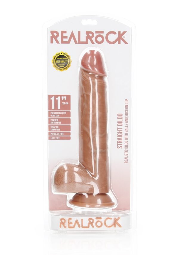 Straight Realistic Dildo with Balls and Suction Cup – 11 / 28 cmRealRock is ontworpen voor jouw ultieme genot. Een stevige en zacht aanvoelende dildo, met een n