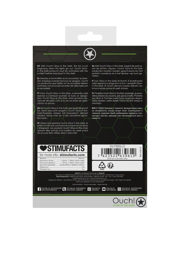 Cockring Set – Glow in the Dark – 2 PiecesOuch! Glow in the Dark, de toekomst van bondage is hier. Het design heeft het autentiek bondage uiterlijk, maar brengt