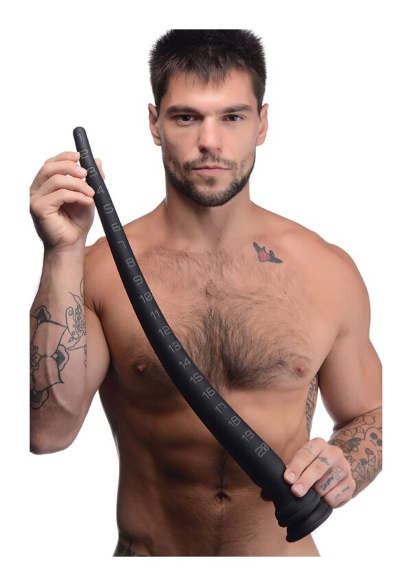 Tapered Silicone Hose with Structure – 22 / 56 cmHoeveel inch kun je nemen? Test je grenzen en geniet van tot 15 inch diep bereik van deze kleine taps toelopende siliconen slang! Het flexibele karakter is vergevingsgezind van binnen terwijl je door je diepste delen navigeert, terwijl de taps toelopende punt het gemakkelijk maakt om in te brengen. De geleidelijke tapsheid is zacht voor de ingang van uw gat en biedt toch de bevredigende vulling die u nodig hebt! De sterke zuignapvoet bevestigt deze slang op elk glad en vlak oppervlak – perfect voor de badkamer, maar bruikbaar in elke kamer met een spiegel of plat zelfs vloeren. Elke centimeter is geetst op het oppervlak van deze fluweelzachte schacht, zodat jij of je geliefde bij elke sessie doelen kunnen stellen, zodat je je grenzen zichtbaar kunt verleggen. Gemaakt met eersteklas lichaamsveilige siliconen – ftalaatvrij, superzacht en heerlijk flexibel voor een hoogwaardige en zorgeloze sessie. Alleen compatibel met smeermiddelen op waterbasis! Voor en na elke sessie gemakkelijk wassen met warm water en een milde antibacteriele zeep.