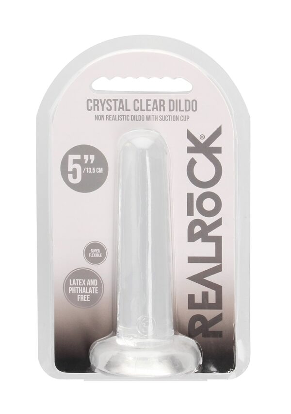 Non-Realistic Dildo with Suction Cup – 5 / 13,5 cmKlaar voor een CRYSTLA CLEAR orgasme? Bereik je kristalheldere climax in stijl met deze mooi gevormde, doorzichtige dildo’s. Deze dildo kijkt dwars door je heen en weet dus precies wat je wilt. Deze dildo is geschikt voor anaal en vaginaal gebruik!Vingerachtige precisiestimulatie, geweldig voor lekkere anale stimulatie, en zeker ook een clitorisvriend? Dat en meer vind je in deze dildo! De basis fungeert als zuignap voor handsfree gebruik, maar geeft ook de optie om hem in een harnas te gebruiken. Alle REALROCK CRYSTAL CLEAR dildo’s zijn ftalaatvrij, latexvrij, lichaamsveilig en niet poreus. Hierdoor zijn ze makkelijk te reinigen en gaan ze nog langer mee.