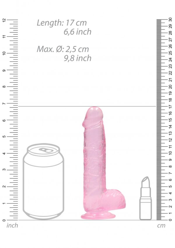 Realistic Dildo with Balls – 6 / 15 cmDit REALROCK CRYSTAL CLEAR-model is ontworpen met realistische ballen voor een verbeterde, levensechte ervaring. Alle zijn voorzien van een stevige zuignap, zodat u ze op vrijwel elke vlak oppervlak kunt vastzetten. Alle REALROCK CRYSTAL CLEAR’s zijn ftalaatvrij, latexvrij, lichaamsveilig en non-poreus, waardoor ze makkelijk schoon te maken zijn en een langere levensduur hebben. Dit model met ballen is 17cm (6.7) lang, inclusief de zuignap, heeft een penetreerbare lengte van 12.5cm (4.7) en een omvang van 3.1cm (1.2).