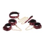 6 Piece Burgundy Bondage Set Burgundy Cuffs. Collar. and Leash
