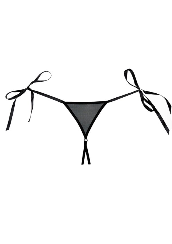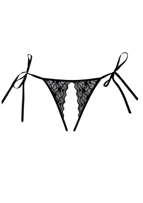 Lolita – Panties – One SizePlagerige dunne linten versieren de heupen, wachtend om losgemaakt te worden. Geschulpte kant omlijnt een provocerende ouverte voorka