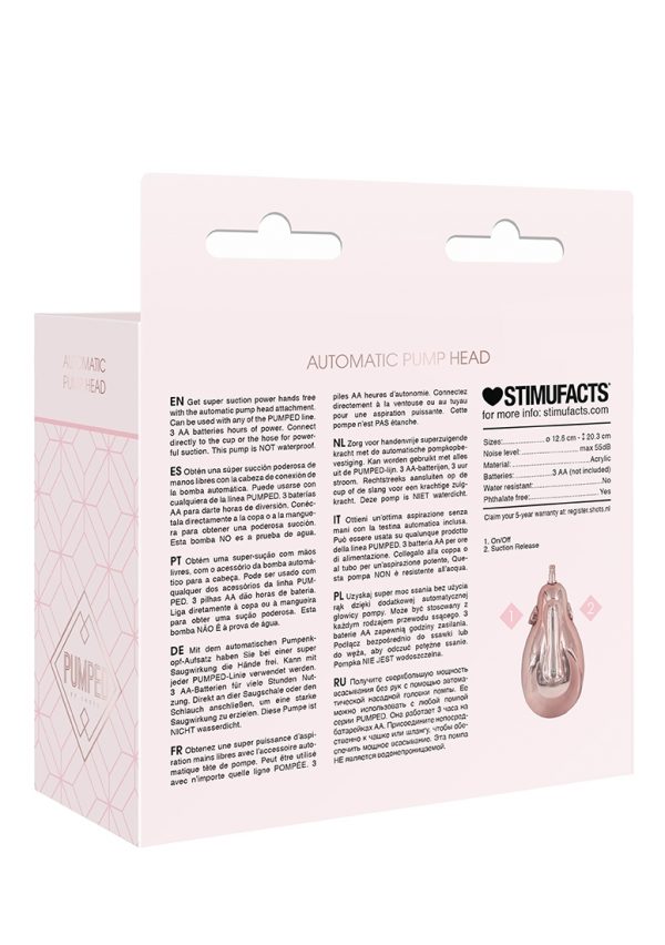 Automatic Pump HeadKrijg super zuigkracht handsfree met de automatische pompkopbevestiging. Kan worden gebruikt met alle PUMPED-lijnen. 3 AA-batterijen urenlang