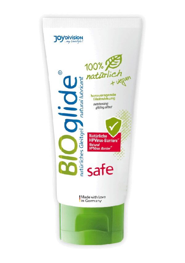BIOglide Safe – Vegan Lubricant – 3 fl oz / 100 mlBIOglide safe met carrageenBIOglide safe met carrageen de veilige variant, die kan beschermen tegen humaan papillomavirus (HPV) infecties. Dit seksueel overdraagbare virus kan bij vrouwen leiden tot baarmoederhalskanker en genitale wratten. Carrageen, een hoogwaardig ingredient, kan voorkomen dat het virus zich hecht aan menselijke cellen. Carrageen fungeert als een natuurlijke barriere. De hoogste normen gelden zowel voor liefde als voor biologische producten. 100 natuurlijk en vegan BIOglide is speciaal ontwikkeld om vaginaal vocht op milde wijze te ondersteunen. De zijdezachte hydraterende, kleurloze en olievrije BIOglide laat je liefdesleven bloeien. Met BIOglide ervaar je op een prettige manier een zorgeloze seksualiteit. De door BDiH goedgekeurde Natural Product-Standard zorgt ervoor dat BIOglide voldoet aan de hoge eisen van de biologische markt.