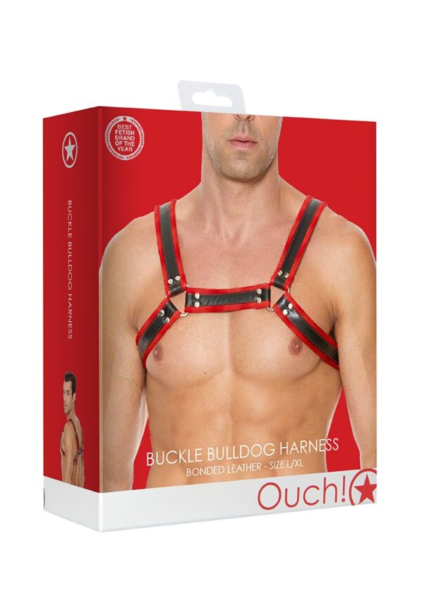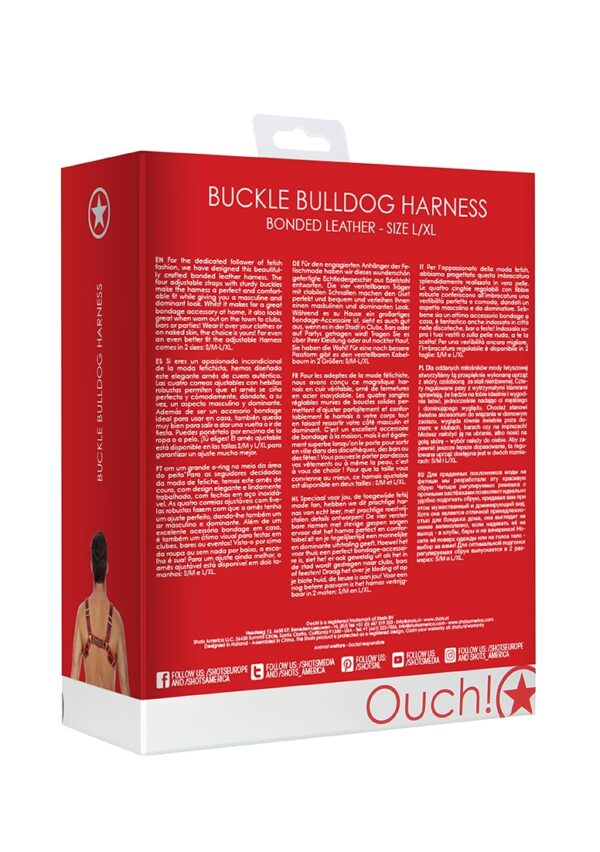Leather Bulldog Harness with Buckles – L/XLSpeciaal voor jou, de toegewijde fetisj mode fan, hebben we dit prachtige harnas van echt leer, met prachtige roestvrijstalen details ontworpen! De vier verstelbare riemen met stevige gespen zorgen ervoor dat het harnas perfect en comfortabel zit en je tegelijkertijd een mannelijke en dominante uitstraling geeft. Hoewel het voor thuis een perfect bondage-accessoire is, ziet het er ook geweldig uit als het in de stad wordt gedragen naar clubs, bars of feesten! Draag het over je kleding of op je blote huid, de keuze is aan jou! Voor een nog betere pasvorm is het harnas verkrijgbaar in 2 maten: SM en LXL.