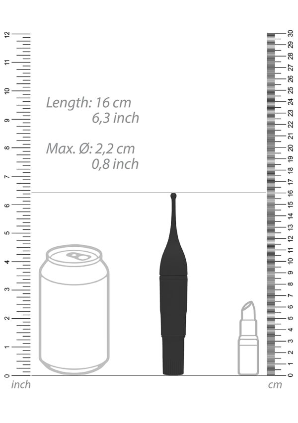Clitoral TicklerHit the clit! Deze puntige afgeronde kop zal telkens weer op de juiste plek terechtkomen en stimuleren waar het er echt toe doet. Deze clitorale kietelaar kan tot duizelingwekkende 15.000 omwmin maken bij minder dan 60 dB. Hij is gemaakt van hoogwaardig ABS en heeft een totale lengte van 16 cm (6.3?) met een maximale breedte van 2.5cm (0.9?). Dit speeltje heeft een AA-batterij nodig (niet inbegrepen), voor meer dan 1 uur plezier. Verkrijgbaar in zwart, roze en paars.