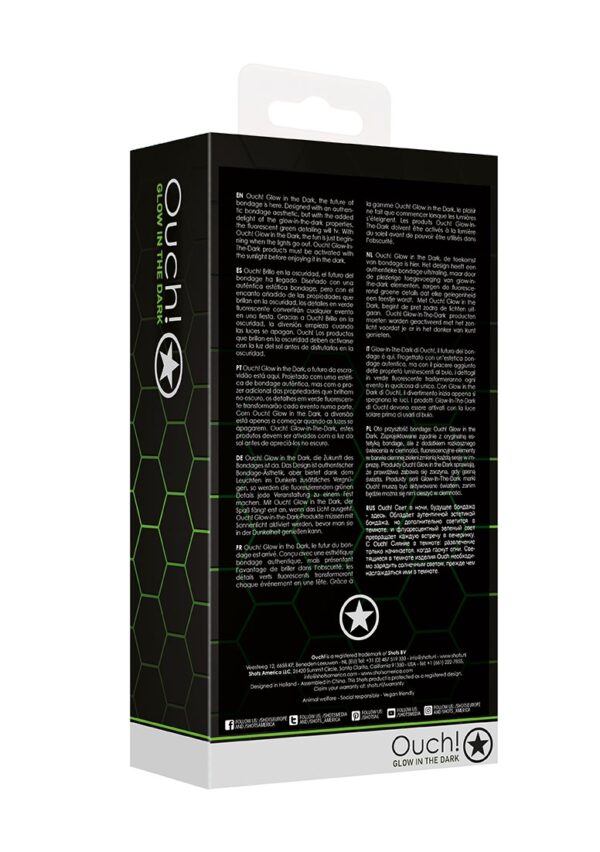 Collar and Leash – Glow in the DarkOuch! Glow in the Dark, de toekomst van bondage is hier. Het design heeft het autentiek bondage uiterlijk, maar brengt licht in het duister door zijn fluoresecrende groene details waardoor alles een feest wordt. Halsband en riem – deze verstelbare halsband is op zich al prachtig, maar is nog mooier met de riem erbij. De riem biedt de juiste hoeveelheid beweging voor zowel comfort als beteugeling. Een Halsband en Lijn zijn onmisbaar in uw BDSM-verzameling. Ouch! Glow-In-The-Dark producten moeten worden geactiveerd met het zonlicht voordat je er in het donker van kunt genieten.