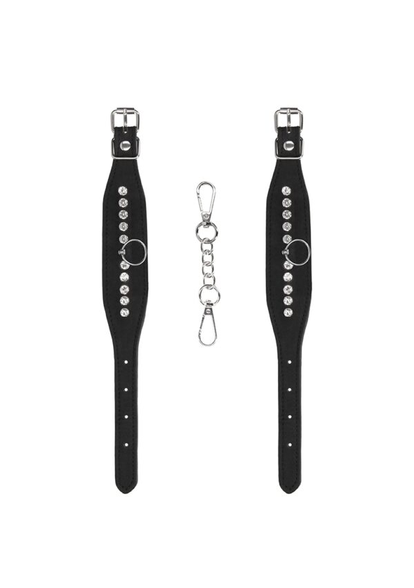 Diamond Studded Wrist CuffsJe gaat nergens heen, tenzij je het vriendelijk vraagt. Bind je partner vast, rem zijn beweging af en beslis waar het spel heen gaat. Verstelbaar, sterk en bovenal mooi – deze handboeien zijn een perfect paar.
