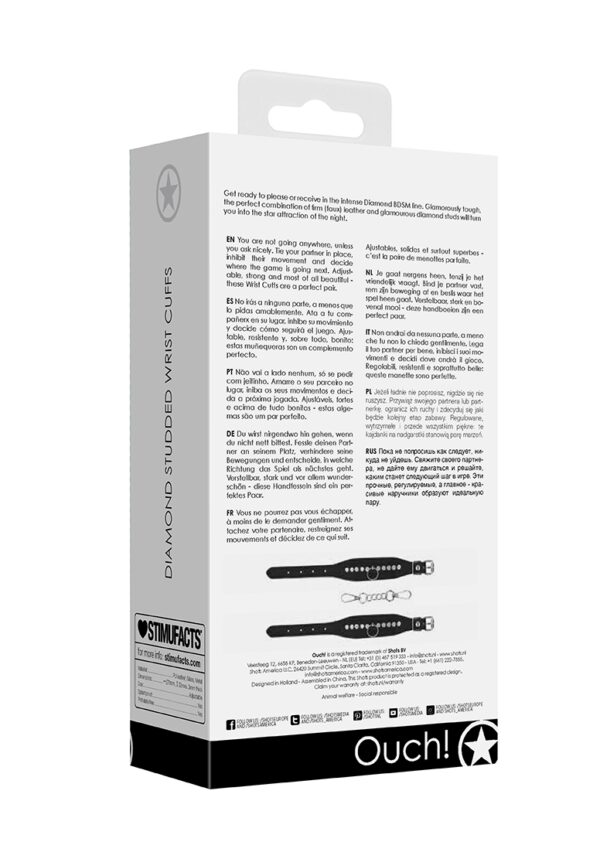 | omschrijving beslist | Diamond Studded Wrist Cuffs Diamond Studded Wrist Cuffs Je gaat nergens heen, tenzij je het vriendelijk vraagt. Bind je partner vast, rem zijn beweging af en beslis waar het spel heen gaat. Verstelbaar, sterk en bovenal mooi – deze handboeien zijn een perfect paar. |