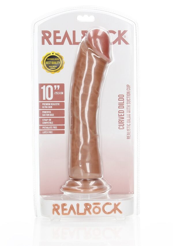 Curved Realistic Dildo with Suction Cup – 10 / 25,5 cmRealRock is ontworpen voor jouw ultieme genot. Een stevige en zacht aanvoelende dildo, met een natuurlijk