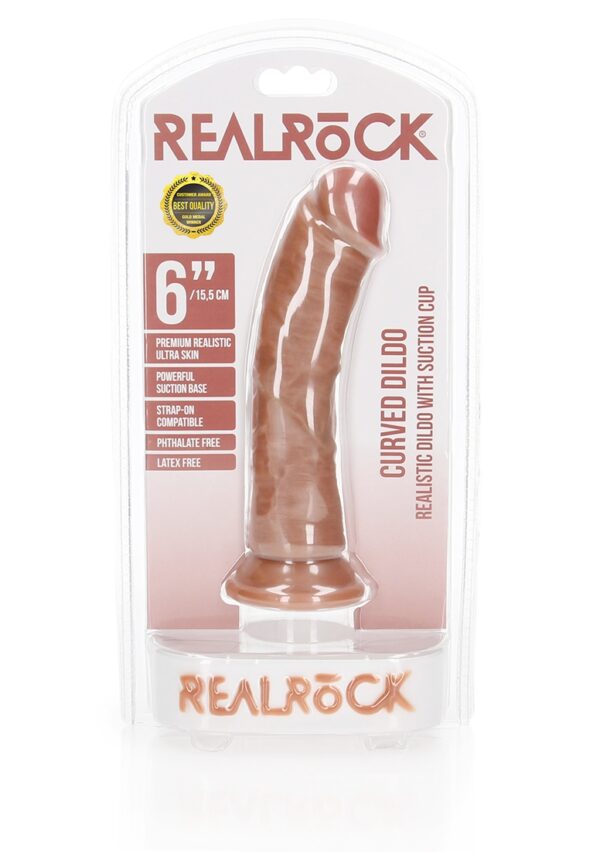 Curved Realistic Dildo with Suction Cup – 6 / 15,5 cmRealRock is ontworpen voor jouw ultieme genot. Een stevige en zacht aanvoelende dildo, met een natuurlijk u