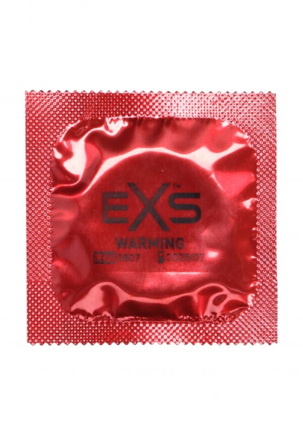 EXS Warming – Condoms – 144 PiecesGlad, effen, natuurlijk latex, wijd uitlopend condoom met speenuiteinde en siliconengesmeerd condoom. Als je een comfortabel passend condoom nodig hebt met een beetje warmte, dan is dit iets voor jou! Het is een 54 mm breed condoom met wijd uitlopende punt. EXS warming is gesmeerd met een speciaal samengesteld glijmiddel dat je partner dat gevoel van comfort en een verwarmend gevoel geeft. Krachtig getest volgens de Europese normen. Dit product is extreem dun maar heeft de sterkte van dikkere reguliere latex condooms. De EXS Warming 144 is geweldig als je een beetje plezier en warmte in je leven nodig hebt.