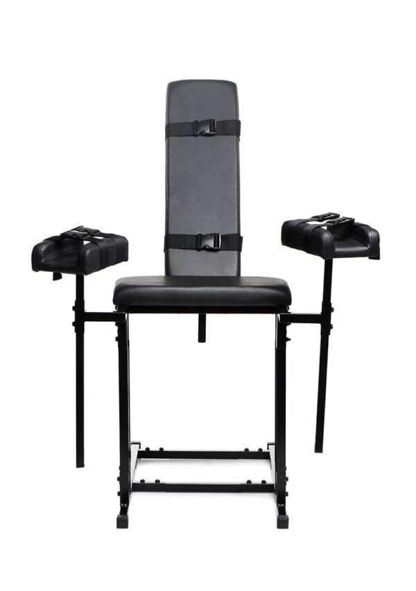 | Omschrijving Beslist | Extreme Obedience Chair – Lean back, put your legs up, and enjoy premium, kinky luxury with this Adjustable Bondage Chair. Now you can position yourself or your partner at the angle that works perfectly for your both. This chair has a heavy duty frame that can handle up to 440 lbs (199 kg). With an adjustable backboard, you can sit them upright so they can watch your administrations of pleasure and pain or lay them back so their body relaxes and stretches out, their chest and belly exposed for teasing, sensation play and affectionate touch. Their leg height can also be adjusted so for their comfort, as well have their legs up high or lower them a bit if that works better. The whole chair is adjustable both for your comfort and theirs! As they sink into the plush, foam cushions covered with PVC leather, theyll be able to handle longer scenes and their body will have some padding to push into as you play with them roughly or deliver strong thrusts! To keep them in place, there are straps with ABS plastic buckles that easily secure their legs and chest. Whether its to keep them safely bound or to keep them from writhing too much in pain or pleasure, these adjustable straps are easy to take on and off for quick changes. On the sides of the board as D-rings for wrist cuffs or other bondage accessories to clip to, as well! Its up to you how youd like to play! Ask your partner to climb up into the chair and try it out. Adjust the leg height and the chair backboard angle for the, and adjust any other positions and heights for yourself, as well. Once youve got the settings out of the way, bind them with the straps and buckle them in. Tease and torment them with pleasure and pain while they writhe in agony and ecstasy! Use floggers, nipple clamps, ticklers, vibrators and more while theyre bound and secured, ready to receive. If youre solo and want to enjoy it yourself, strap yourself in and enjoy the support that the leg boards offer so you can really enjoy being spread wide as you play with yourself in your sexy bondage chair! Take it up a notch and combine this with the Dicktator Extreme Sex Machine and get pounded while your on your throne!To clean the chair after use, spray with a toy cleaner and use a soft cloth to wipe it clean. Avoid exposure to sunlight and heat to preserve the PVC faux leather material longer. Measurements: Overall: Length 40 inches x Width 21.5 inches x Height 57 inches Torso pad: 31 inches Long x 9.5 inches WideSeat pad: 22 inches Long x 9.5 inches WideLeg rests: 11 inches Long x 8 inches WideMax weight limit 440 lbsMaterials: Iron, wood, foam, PVC leather, nylon, ABS plastic Color: BlackKey Features:Adjustable Back Rest: Sit up or lean back with this adjustable back rest. Strap your partner in and move them up or down for the perfect angle!Plush, Comfortable Pads: Perfect for long sessions, these plush pads are super comfortable and cushion against hard thrusting or movement.Heavy Duty Frame: Get a frame that can handle rough play! This heavy duty frame is made of metal and wood so it holds up as a durable piece of furniture.Quick Release Buckles: The ABS plastic buckles are easy to release for when you partner needs to sit up, readjust, or pause the scene.D-Rings to Attach Bondage Accessories: Attach wrist cuffs or other bondage accessories to the D-rings to add another element to your play!Compatible with the Dicktator Extreme Sex Machine: While this item is not included in purchase, this chair is perfectly paired with this satisfying sex machine!  |