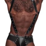| Omschrijving Beslist | Faux Leather Aries – Black – OS – From the Leather collection by Male Power, this style includes: A harness featuring adjustable metal buckles, attached rings, and decorative metal studding. |