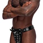 | Omschrijving Beslist | Fetish Eros – Black – S/M – From the Fetish collection by Male Power, this style includes: A gladiator inspired kilt design featuring an attached thong with a cutout peephole, triangle flaps and decorative metal studs. |