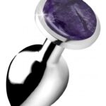 Amethyst Heart – Butt Plug – LargeVersier je achterste met de romantische ontspannende energie van deze echte hartvormige amethist edelsteen butt plug – breng je humeur in evenwicht en ruim negatieve gedachten op terwijl je je behoefte aan backdoor fill vervult! De gladde en zware textuur biedt een diep bevredigende massa van hardheid voor je kont om op te knijpen, perfect voor gebruik op jezelf of als een warming-up speeltje voor verder anaal plezier met een minnaar. Gemaakt van een lichaamsveilige aluminiumlegering die gemakkelijk schoon te maken is en compatibel is met de meeste glijmiddelen, zodat je met je favoriete gladde spullen kunt spelen. Afmetingen: Totale lengte 3,7 inch, inbrengbare lengte 3,2 inch, diameter op het breedste punt 1,6 inch Materialen: Aluminiumlegering, Amethist Kleur: Paars, metaal Echte hartvormige amethist edelsteen: Geeft een kalmerende, rustgevende energie aan je kont De hartvormige amethist edelsteen brengt je stemming in evenwicht en helpt negatieve gedachten te verdrijven terwijl je speelt Comfortabel verzwaard: Voeg een neerwaartse trek toe aan je gat voor extra stimulatie en plezier dankzij de zware aard van deze metalen buttplugs Nikkelvrije aluminiumlegering: Het aluminiumlegering materiaal zorgt voor een heerlijk harde en gladde massa voor je kont om in te knijpen Compatibel met de meeste glijmiddelen Geweldig voor temperatuurspel: Verwarm of koel deze edelsteen buttplug in een kom met water om een extra laag sensatie toe te voegen terwijl je speelt Perfect voor ervaren buttplug gebruikers die op zoek zijn naar een nieuwe manier om te spelen