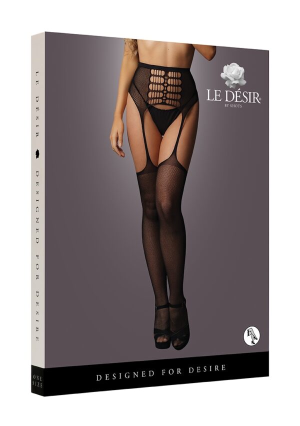High-waist garterbelt stockings – Black – O/S