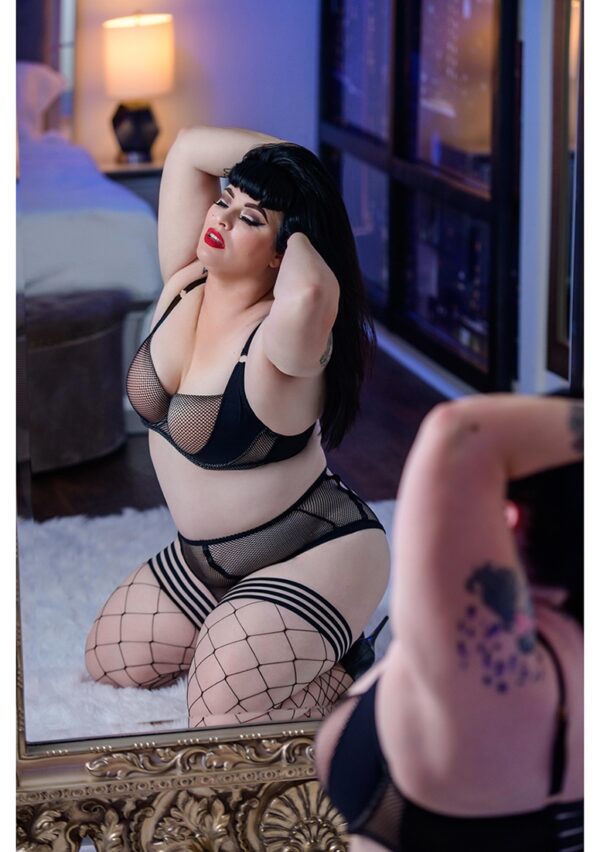 Michelle – Thigh High – B – BlackDit is een net dat ze niet snel zullen vergeten! De Michelle zwarte grote net visnet dij-hoog is perfect om te dragen onder jea