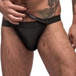 Mini Cock Ring Short – M – BlackDit model komt uit de Cock Pit Net-collectie van Male Power en omvat: een mini-cockringshort met kort gesneden pijpen, een afneembaar afneembaar zakje met daarin een zachte elastische C-ring en een tailleband met een satijnen afwerking van 1 12.