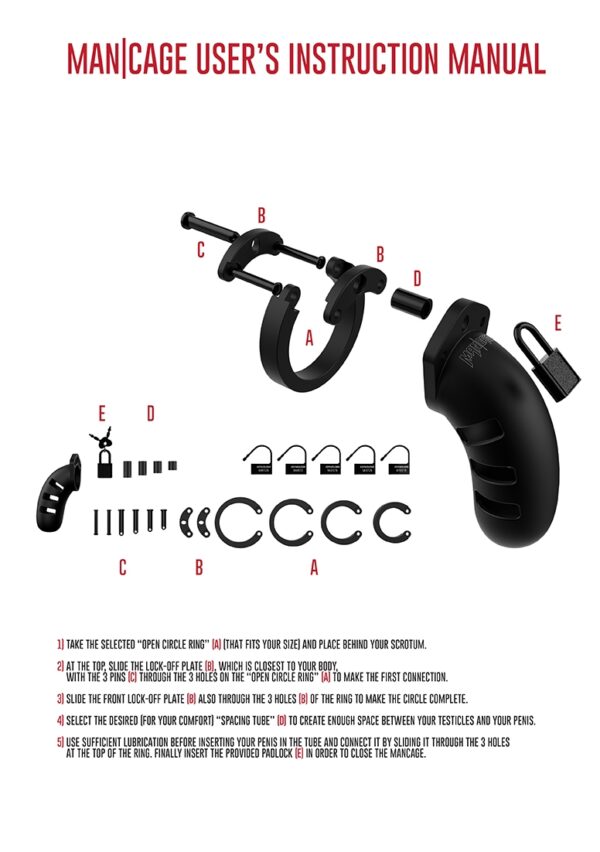 Model 21 Chastity Cock Cage – 4.5 / 11,5 cmVoel de ultieme kracht als sleutelhouder van de meest intieme delen van je partner. Ervaar de meest bevrijdende gevoelens bij het openen van het slot. Alle controle ligt in handen van je Dominant. Deze Mancage is een absolute must voor mensen die van kinky BDSM houden! Met deze Mancage voorkom je een erectie door je penis te ‘kooien’ – wat zich opbouwt tot een extreme ontlading wanneer deze wordt verwijderd. Door de medische siliconen is het veilig om de hele dag te dragen en is het soepel onder kleding. Zo kun je het stiekem, maar met gemak, overal dragen. Het kan op verschillende punten worden aangepast en is verkrijgbaar in twee maten. Er zijn vijf verschillende ringen en verschillende afstandhouders om het perfect te meten. Het heeft functionele openingen voor ventilatie en toiletbezoek en is gemakkelijk schoon te maken. Deze Mancage wordt geleverd met verschillende plastic sluitingen, te gebruiken als extra discretie vereist is (zoals veiligheidscontroles). Deze sloten kunnen worden losgeknipt wanneer het tijd is voor de ultieme ontlading. Een stevig metalen slot is ook inbegrepen. Op zoek naar iets echt spannends en ondeugends? Wil je volledig worden gecontroleerd door je partner? Deze Mancage geeft de mogelijkheid om alle macht te nemen of deze volledig over te dragen aan je partner. Kinky? Dat is een zekerheidje. Speel op safe, ga voor comfort en sta alleen ongemak of pijn toe als erom gevraagd wordt en niemand wordt er op de lange termijn door geschaad. Doe de kooi af tijdens het slapen.