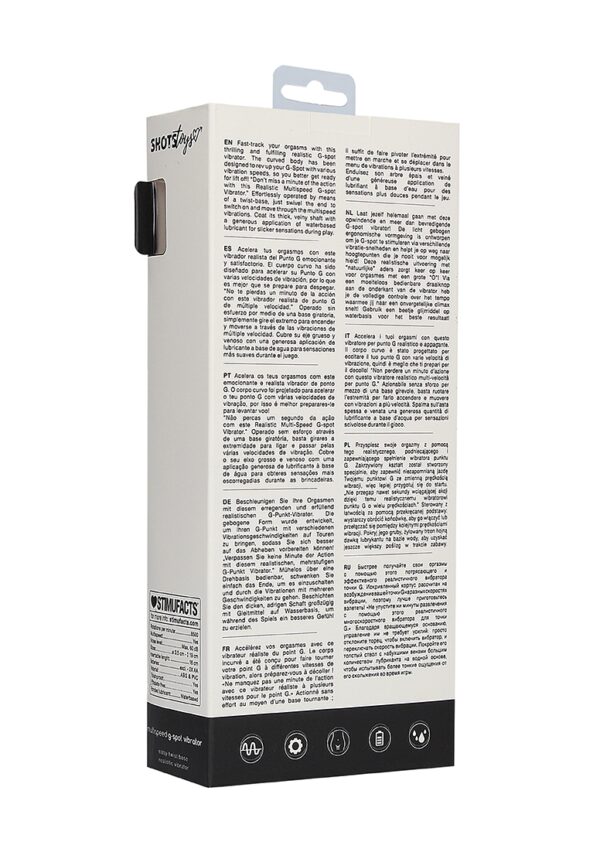 Multispeed G Spot VibratorLaat jezelf helemaal gaan met deze opwindende en meer dan bevredigende G-spot vibrator! De licht gebogen ergonomische vormgeving is ontworpen om je G-spot te stimuleren via verschillende vibratie-snelheden en helpt je op weg naar hoogtepunten die je nooit voor mogelijk hield! Deze realistische uitvoering met natuurlijke aders zorgt keer op keer voor orgasmes met een grote O! Via een moeiteloos bedienbare draaiknop aan de onderkant van de vibrator heb je de volledige controle over het tempo waarmee jij naar een onvergetelijke climax snelt! Gebruik een beetje glijmiddel op waterbasis voor het beste resultaat!