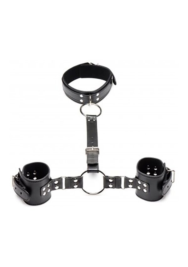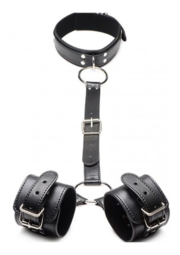 Neck To Wrist BindingsMaak je onderdanige vast met deze Neck to Wrist-boeien! De zachte binnenvoering is zacht voor de huid, zodat je de halsband en polsboeien