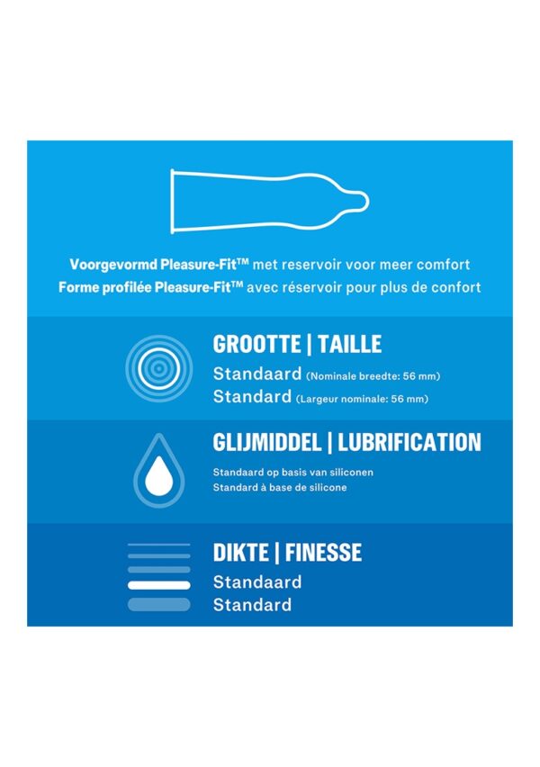 Originals Classic Natural – Condoms – 12 PiecesIedereen is anders, maar de juiste pasvorm moet altijd comfortabel en veilig zijn. Durex Originals Classic Natural condooms zijn de originele Durex condooms, betrouwbaar als altijd. De condooms zijn gemaakt van transparant natuurrubberlatex en hebben een lekkere geur. Pleasure -FitTM-pasvorm met reservoir is speciaal ontworpen voor meer comfort. Geen enkele vorm van anticonceptie biedt 100 betrouwbare bescherming tegen zwangerschap, hiv (aids) of andere seksueel overdraagbare aandoeningen. Lees de instructies aan de binnenkant van de verpakking goed door, vooral als u het condoom gebruikt voor anale orale seks.
