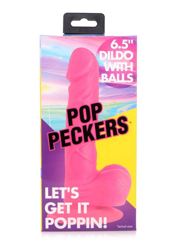 POP – Dildo with Balls – 6.5 / 16.5 cmDe perfecte stevige maar flexibele pik om toe te voegen aan je dildo-collectie. Met zijn leuke klaprooskleur en realistische details vinkt hij alle vakjes aan. Supersterke zuignap kan worden gebruikt voor handsfree spelen of is compatibel met je favoriete O-ringriem op harnas. Gemaakt van ftalaatvrij, latexvrij PVC.