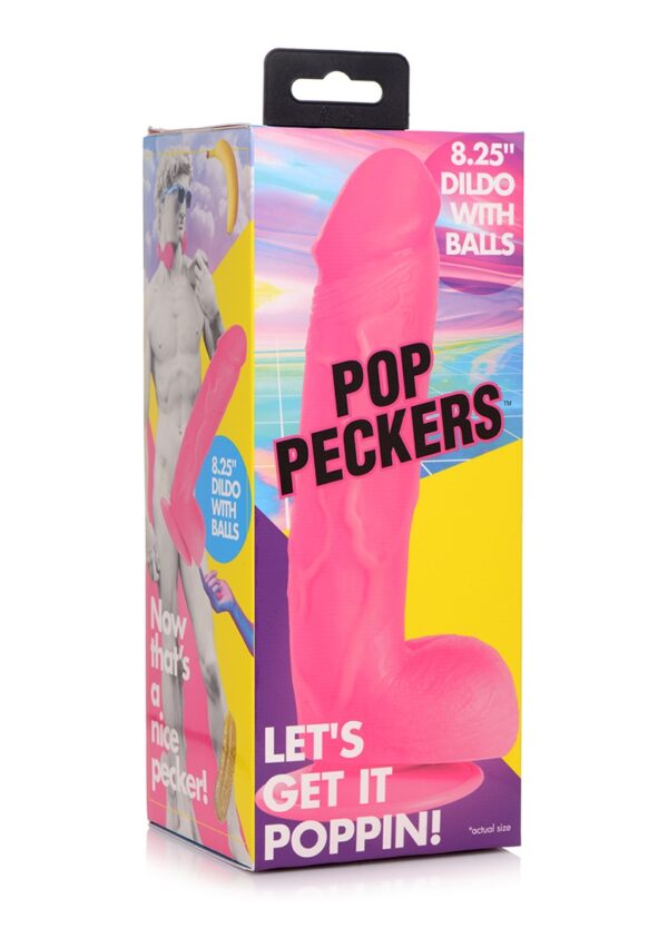 POP – Dildo with Balls – 8.25 / 21 cmDe perfecte stevige maar flexibele pik om toe te voegen aan je dildo-collectie. Met zijn leuke klaprooskleur en realistische details vinkt hij alle vakjes aan. Supersterke zuignap kan worden gebruikt voor handsfree spelen of is compatibel met je favoriete O-ringriem op harnas. Gemaakt van ftalaatvrij, latexvrij PVC.