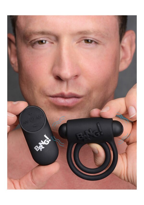Silicone Cock Ring & Bullet with Remote Control – Black