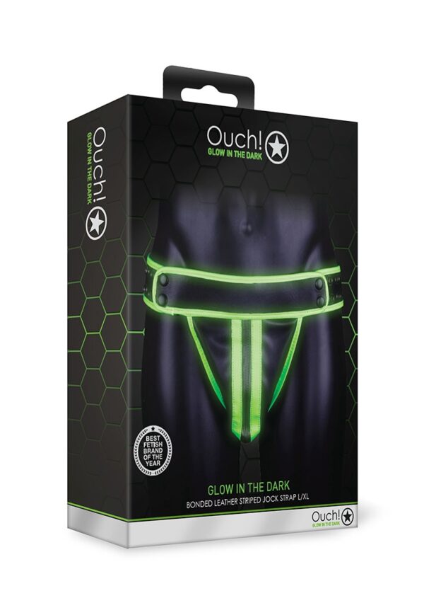 Striped Jockstrap – Glow in the Dark – L/XLOuch! Glow in the Dark, de toekomst van bondage is hier. Het design heeft het autentiek bondage uiterlijk, maar breng