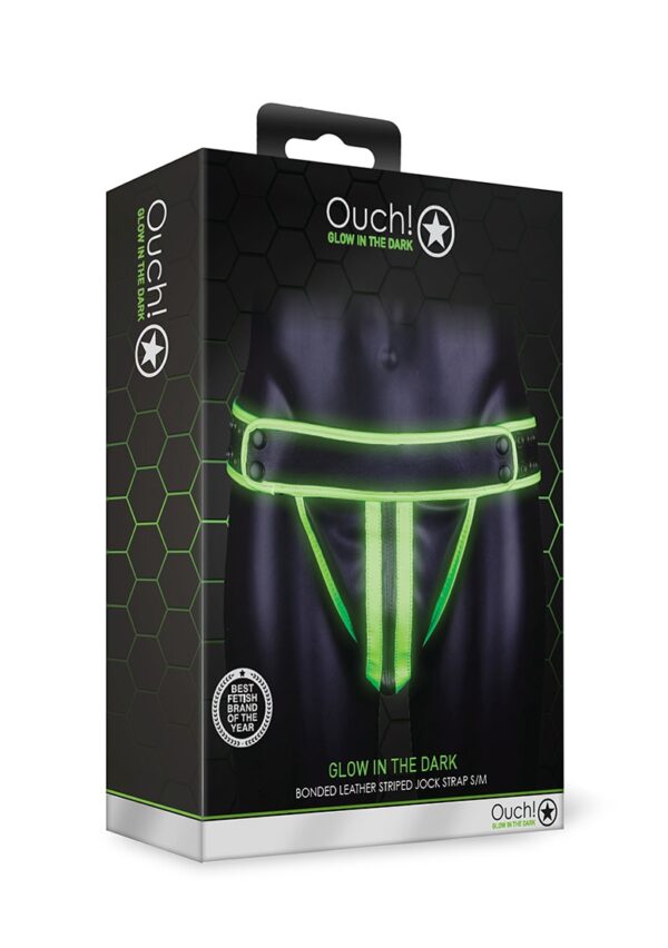 Striped Jockstrap – Glow in the Dark – S/MOuch! Glow in the Dark, de toekomst van bondage is hier. Het design heeft het autentiek bondage uiterlijk, maar brengt