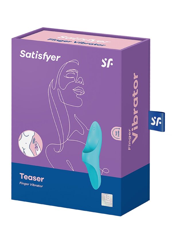 Teaser – Finger Vibrator – Light BlueProductinformatie TeaserDe Satisfyer Teaser is perfect voor veelzijdige stimulatie van alle erogene zones zoals de clitoris en tepels: De vingervibrator is zeer eenvoudig en intuitief in gebruik dankzij de flexibele opening.Erotische avonturen met de Satisfyer TeaserDe Satisfyer Teaser is de perfecte metgezel voor nieuwsgierige mensen. Zijn veelzijdigheid biedt zowel beginners als ervaren plezierzoekers altijd nieuwe ontdekkingsmogelijkheden. Met behulp van de praktische riem kan de vingervibrator gemakkelijk op de hand worden getrokken. Als het eenmaal aan is, zijn de opties eindeloos: gebruik het voor clitorale stimulatie of voor het prikkelen van andere erogene zones zoals de tepels of het perineum. Het werkt geweldig zowel in solospel als met een partner.Ondanks zijn handzame formaat is het een echte krachtpatser: vermomd als een onschuldige vingervibrator, zal hij je snel op gang brengen met diepe, krachtige vibraties met 12 intensiteiten.Satisfyer Teaser: Waterdichte vinger vibrator gemaakt van delicate siliconenDe medische siliconen waaruit de Satisfyer Teaser is gemaakt, zorgt voor sensationele stimulatie terwijl de vibratieritmes varieren van zacht tot krachtig intens. De vingervibrator is natuurlijk waterdicht (IPX7) dus hij kan onder de douche of in bad gebruikt worden en is ook makkelijk schoon te maken. In tegenstelling tot de meeste andere vingervibrators en instapproducten, is de Satisfyer Teaser uitgerust met geintegreerde batterijen die kunnen worden opgeladen met de meegeleverde USB-oplaadkabel.