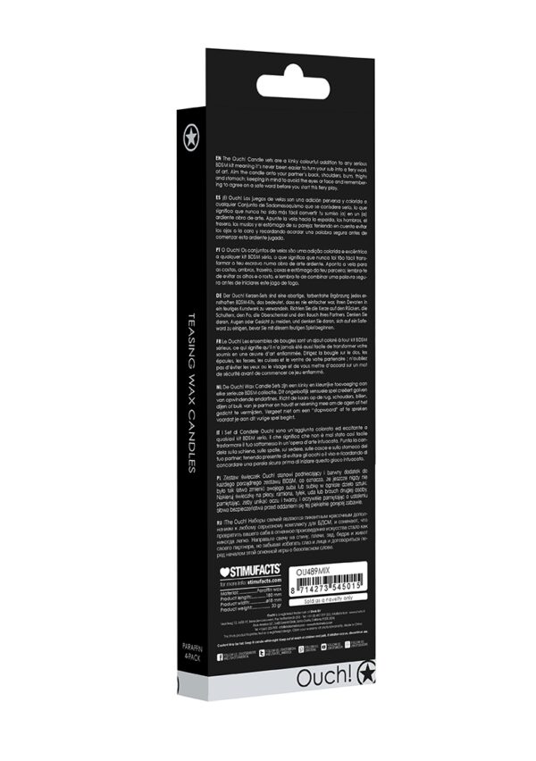 Teasing Wax Candles – 4 Pieces – Large – MulticolorDe Ouch! Wax Candle Sets zijn een kinky en kleurrijke toevoeging aan elke serieuze BDSM collectie. Dit ongelo