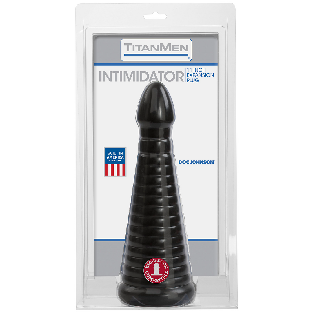 Intimidator – Butt Plug – 11 / 28 cmDe Intimidator, 30 cm van niet aflatende seksuele bevrediging uit de TitanMen-collectie, heeft een geribbelde schacht om de anale spieren en zenuwen te stimuleren. Gemaakt van PVC met de antibacteriele Sil-A-Gel-formule van Doc Johnson, dit item is lichaamsveilig en niet-ftalaat. Met trots gemaakt in Amerika Zwart.