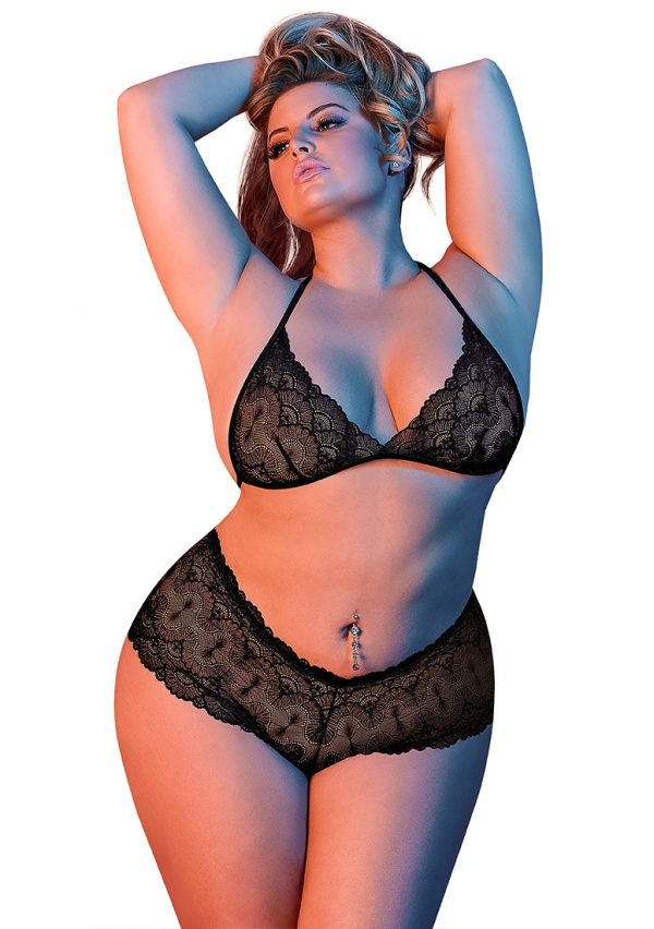 Triangle Bra and Cheeky Brief Set – 2X – Black
