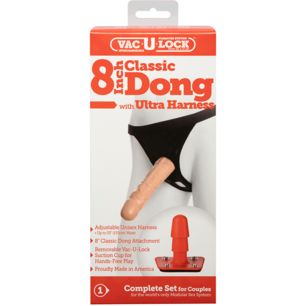 Vac-U-Lock – 8 Inch Classic Dong – With Ultra Harness – Flesh